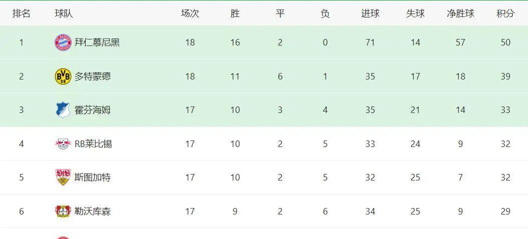 本赛季多特蒙德状态回升,依旧是德甲争冠的重要力量,稳居积分榜第二名且优势明显。紧随其后的是表现异常亮眼的霍芬海姆,排在第三位,有望多年后重返欧冠赛场。然而,莱比锡红牛、斯图加特、勒沃库森以及法兰克福紧追不放,积分接近,竞争异常激烈。