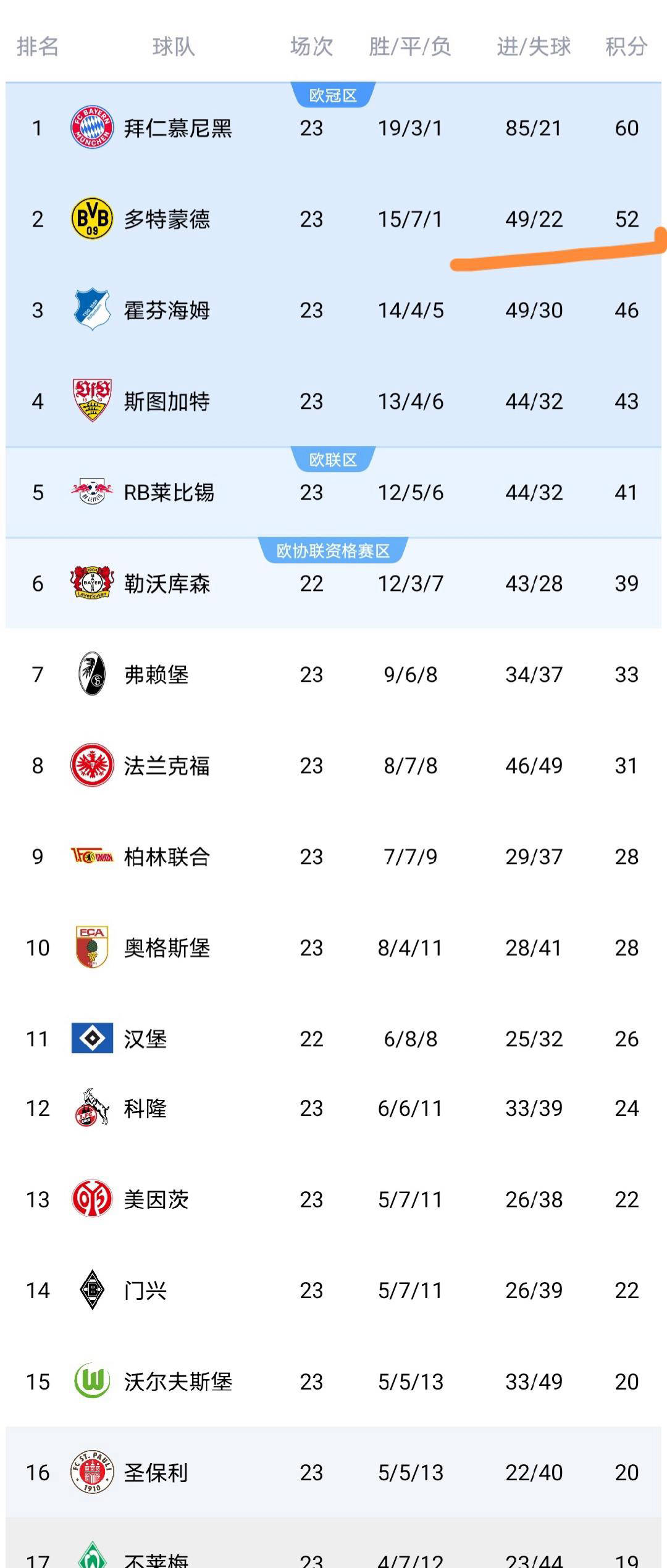 德甲直播,德甲赛程,德甲积分榜,拜仁vs多特直播,德甲比分预测/专为中文球迷打造的德甲资讯站,覆盖2025赛季直播入口、赛程安排、积分榜更新与竞彩比分预测,聚焦拜仁、多特、莱比锡、勒沃库森等焦点球队。今天凌晨,德甲第23轮迎来了三场激烈比赛,斯图加特、不莱梅和门兴格拉德巴赫均在客场作战,产生了一些令人关注的结果。这些比赛结束后,德甲积分榜出现了明显波动,争夺欧洲赛事资格和保级形势更加扑朔迷离。