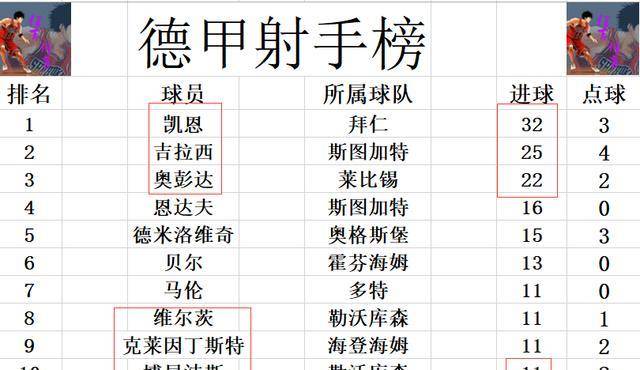 在射手榜上,凯恩以32球领跑,领先第二名吉拉西7球,奥彭达以10球之差位列第三。博尼法斯和维尔茨分别通过进球追平了菲尔克鲁格等人,进入了前十,将进球数门槛提高到11球。返回搜狐,查看更多