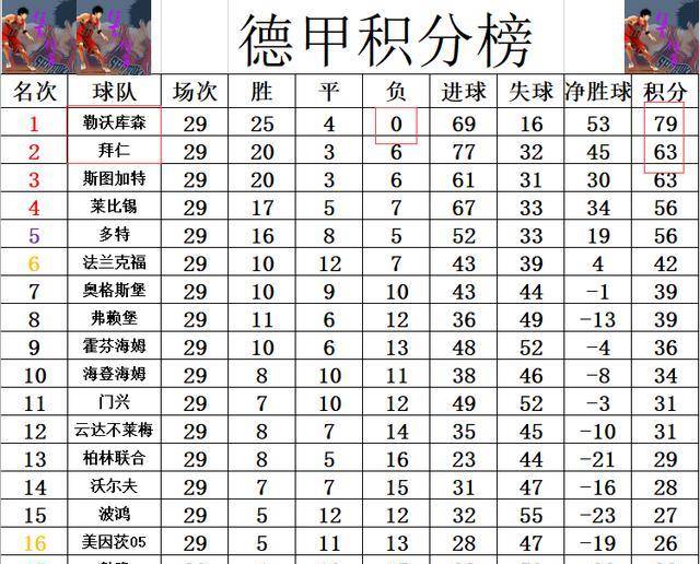 在争夺前四的竞争中,拜仁和斯图加特领先7分,莱比锡则凭借净胜球优势超过多特蒙德排名第四。最后几轮的竞争将异常激烈。