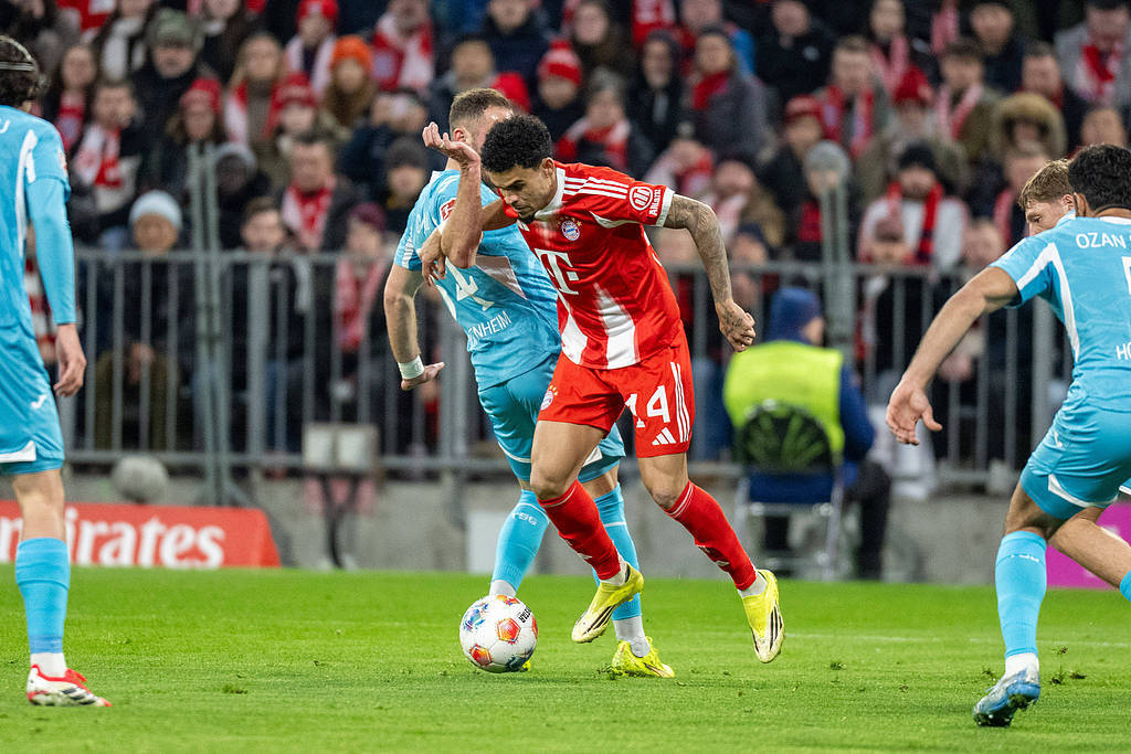 2月9日,德甲第21轮拜仁主场5比1击败霍芬海姆,迪亚斯上演帽子戏法,凯恩两射一传建功。