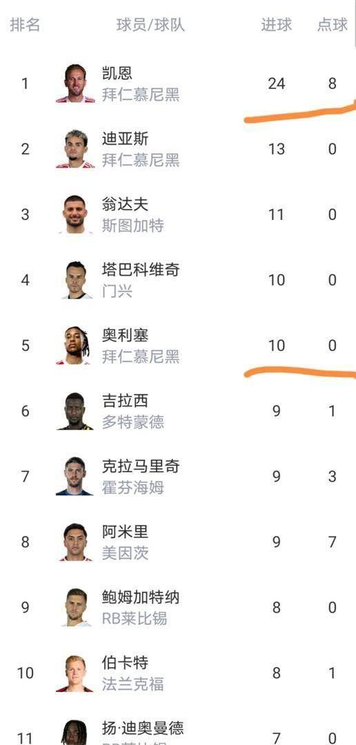 球员个人表现方面,拜仁的哈里·凯恩凭借本场的两个点球,在射手榜上的领先优势已经达到9球,金靴奖的归属几乎失去悬念。 他的队友迪亚斯此役更是光芒四射,独造五球(制造两个点球并完成帽子戏法),是拜仁大胜的首功之臣。 莱比锡的鲍姆加特纳则用梅开二度,帮助球队从客场带走关键胜利。