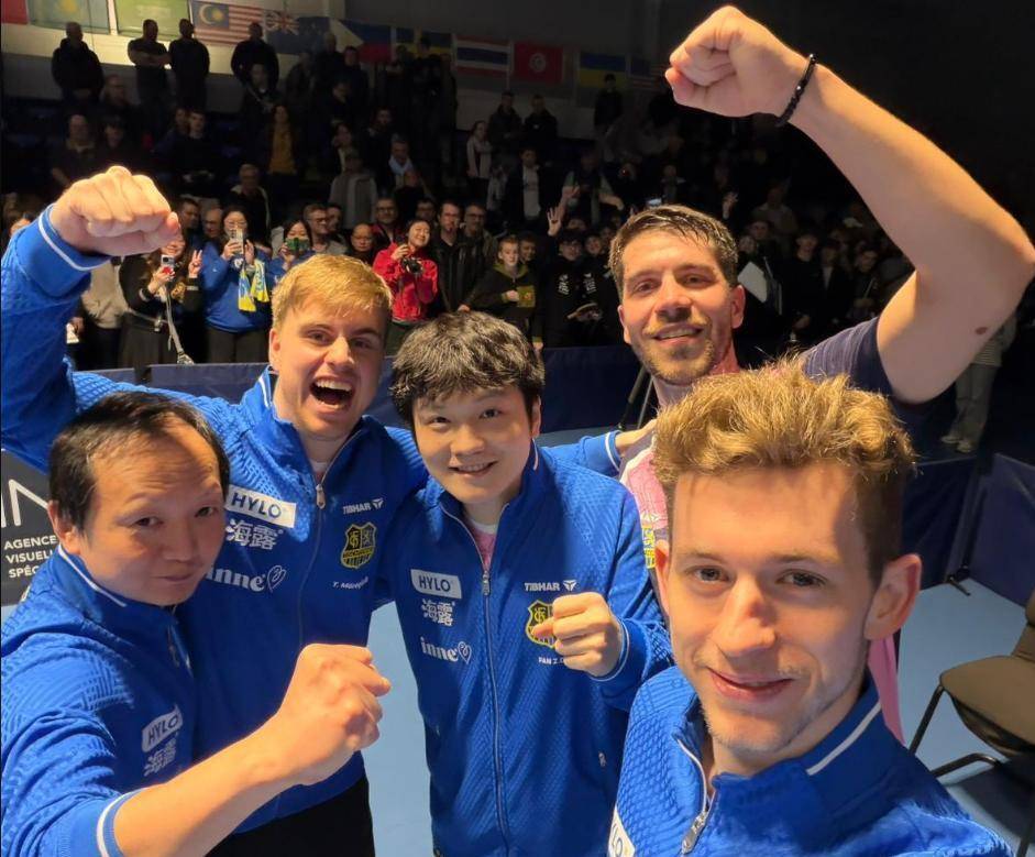 2025年12月成为樊振东留洋的转折点。 德甲第11轮对阵豪门杜塞尔多夫,他在球队1-2落后的危急关头登场,先以3-0轻取豪格,第四盘又3-1逆转贾哈,独得两分助球队3-2险胜。 欧冠首秀中,他更是打出连得11分的碾压局,当选单场MVP。