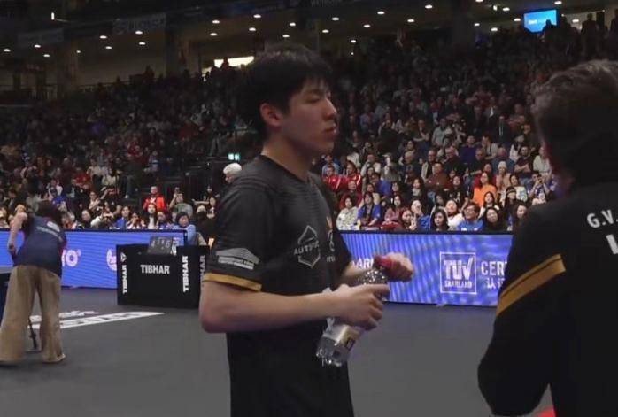 然而接下来的八分钟,成了这个夜晚最不可思议的转折。 温瑞博连追五分,将比分扳成9平,随后在10平的关键分上毫不手软,以12比10硬生生从奥运冠军手里抢下这一局。 决胜局采用欧冠特殊的“抢六”规则,温瑞博彻底放开手脚,反手拧拉如炮弹般砸向樊振东的反手位,6比1,干净利落。 从2比0领先到2比3被逆转,樊振东在新年保持的不败金身,就这样被一位比自己小十岁的队友亲手打破。